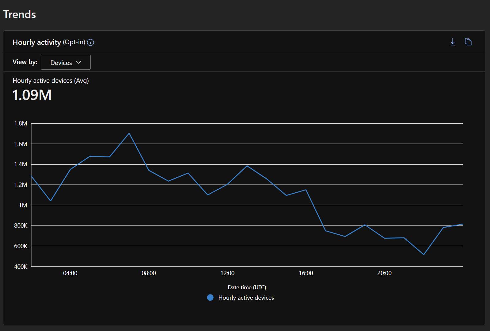 - 每小时活动设备和用户:按小时比较设备级别和用户级活动小时数,以了解使用高峰和行为模式。