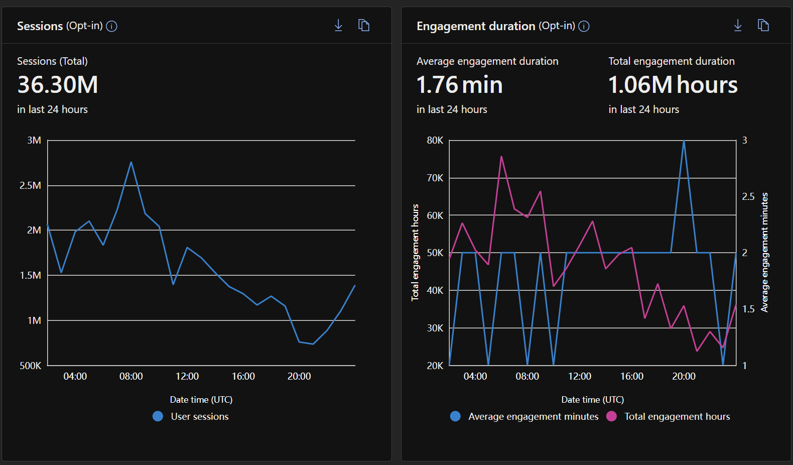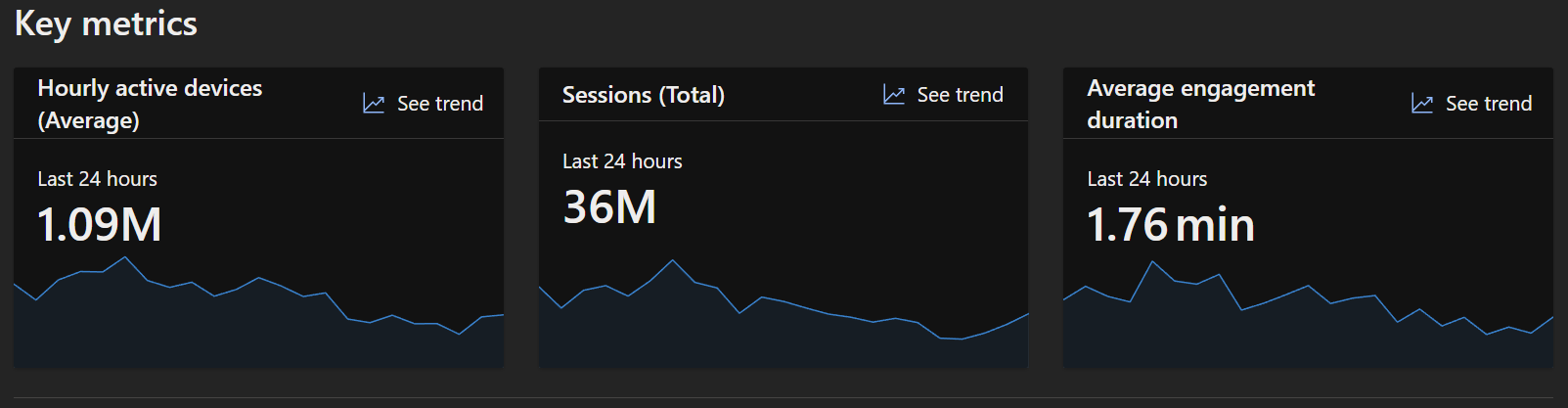 这些指标一起提供最近几小时的访问、活动和参与深度的快速快照。