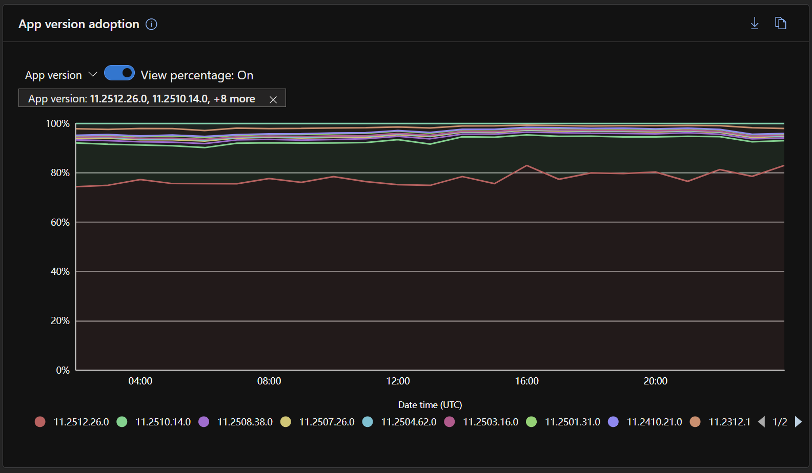- 应用版本采用:监视用户在发布后不久如何采用较新的应用版本。