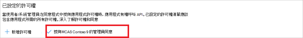 每次新增許可權時,您都必須選取 [ 授與系統管理員同意 ],新許可權才會生效。