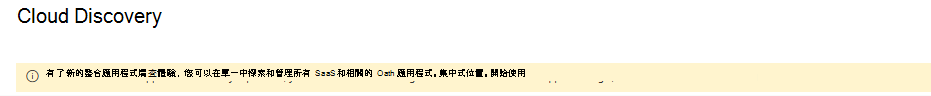 在 Defender 入口網站 https://security.microsoft.com,前往 資產>應用程式。 或者,直接前往 應用程式 頁面,點擊現有雲端發現與應用治理頁面上的橫幅連結。