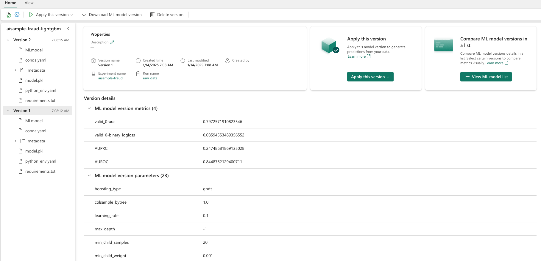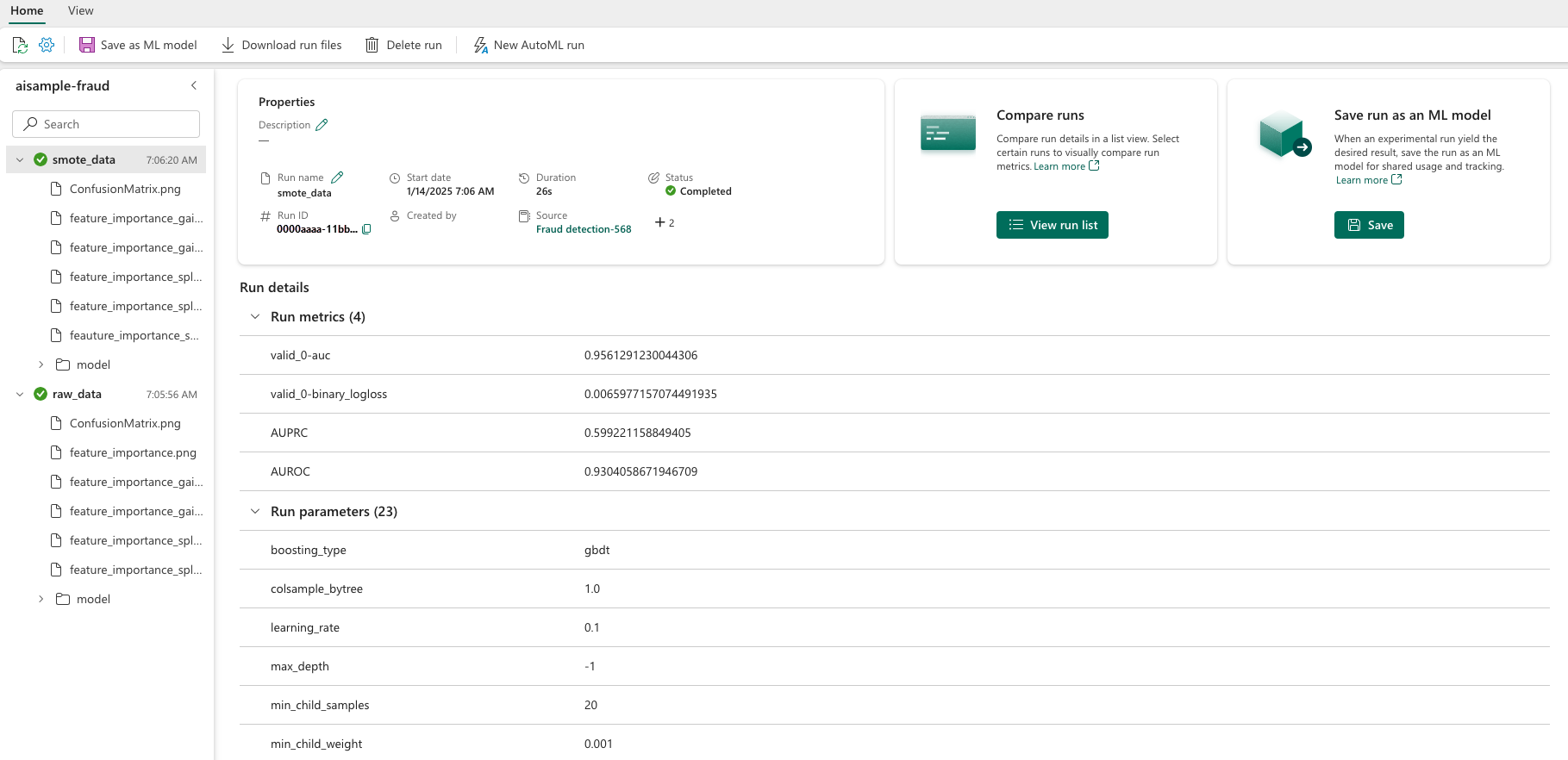 EXPERIMENT_NAME = "aisample-fraud" # MLflow experiment name
