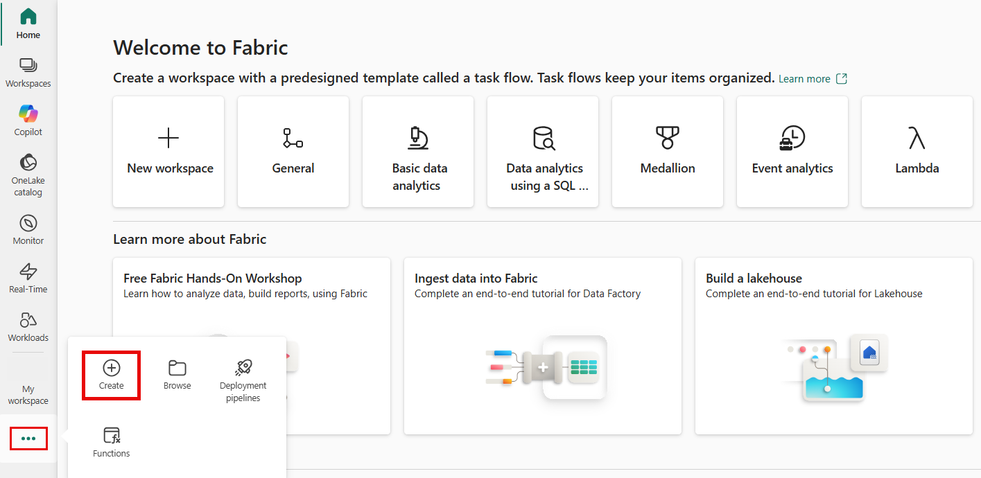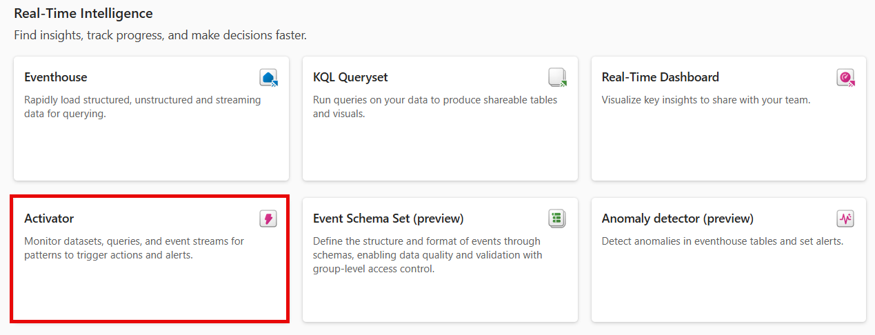 在 「建立 」頁面,Real-Time Intelligence 區塊下方,選擇 「資料啟動器」。