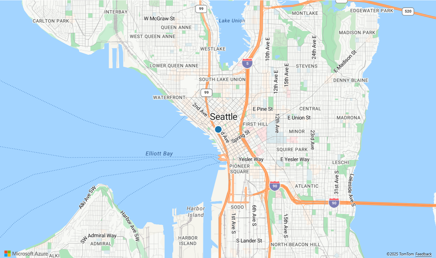 讀取已知文字範例顯示如何讀取已知的文字字串 POINT(-122.34009 47.60995),並使用泡泡圖層在地圖上轉譯。 如需此範例的原始程式碼,請參閱讀取已知文字原始程式碼。