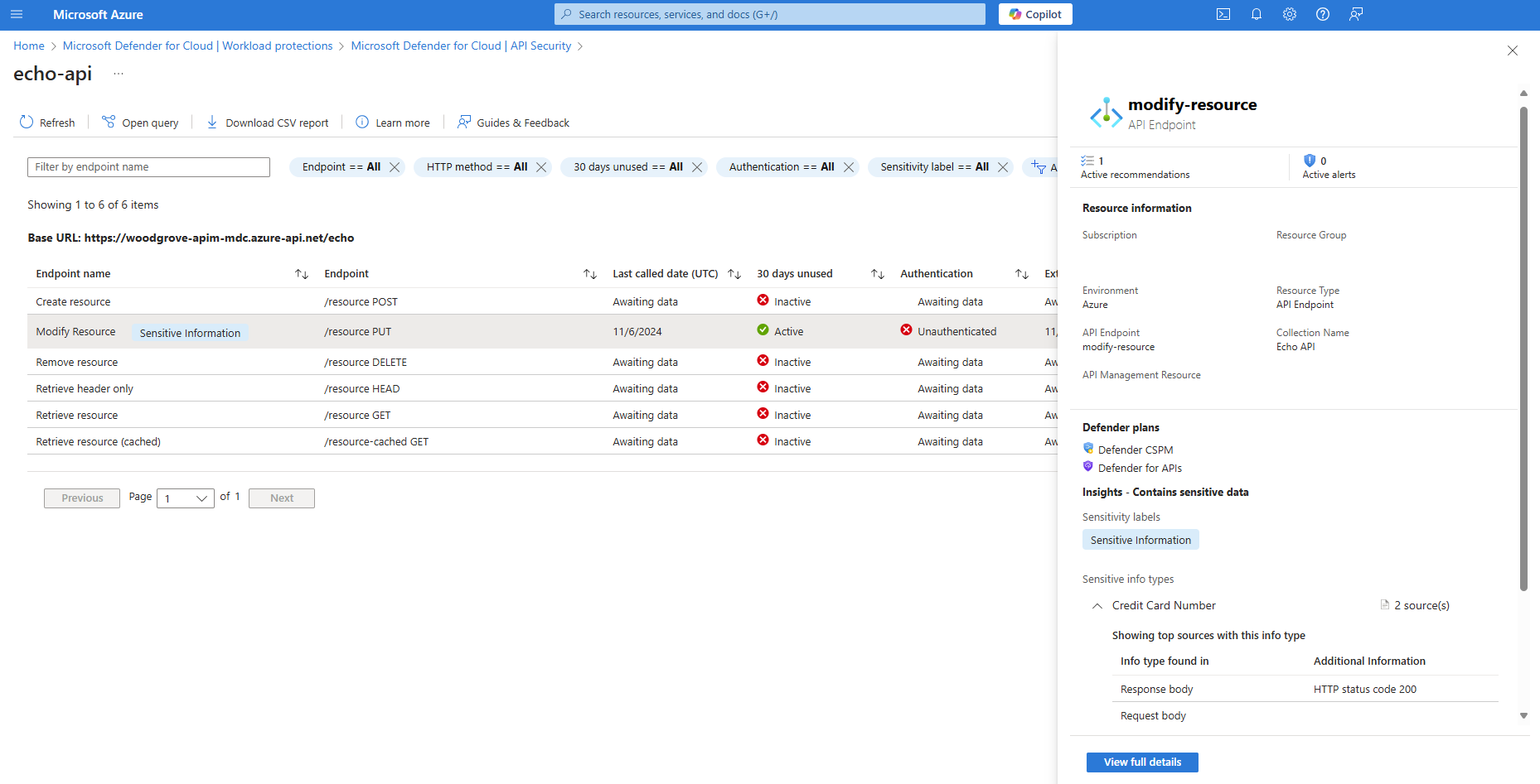 在適用於雲端的 Microsoft Defender 詳細目錄體驗中,檢閱 API 安全性狀態發現以及 API 詳細目錄。