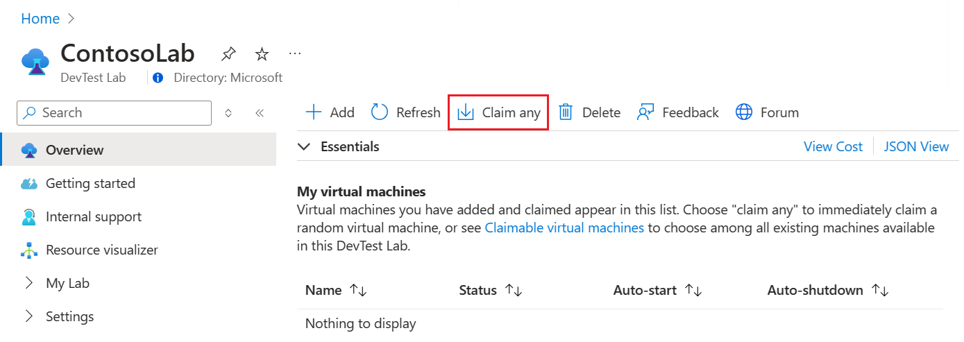 在 [我的虛擬機] 清單中,找出要取消認領的 VM,然後選取 VM 名稱以檢視資源詳細數據。