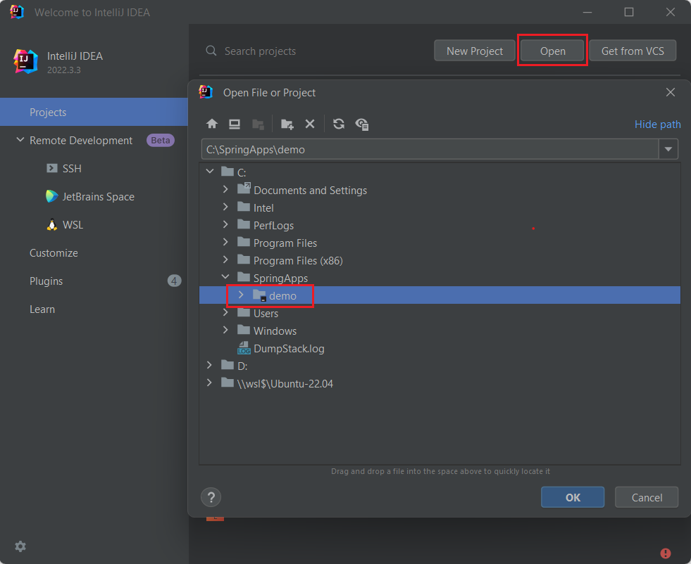 開啟 IntelliJ IDEA,然後選取 [ 開啟]。