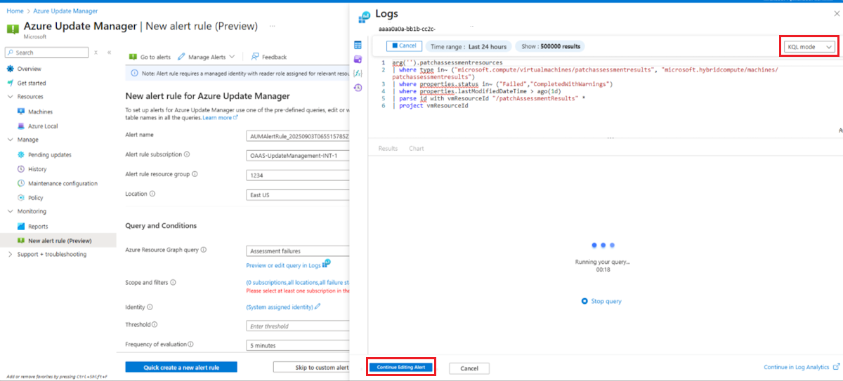 選取 [在記錄中預覽或編輯查詢 ] 以執行選取的警示查詢選項或編輯查詢。