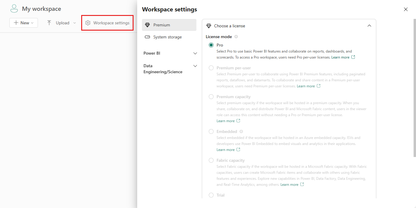 前往工作區,選擇 [工作區設定]。