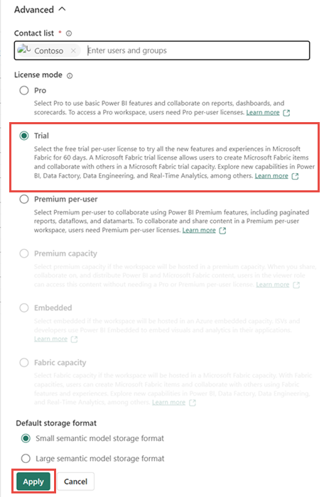 註冊免費的 Microsoft Fabric 試用版。 Fabric 試用版需要 Power BI 授權。 如果您還沒有,申請 Fabric 免費授權, 然後啟動 Fabric 試用。