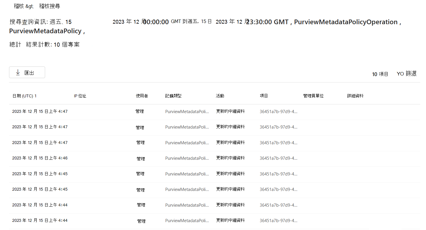 如需可用活動的清單,請參閱 稽核記錄活動頁面