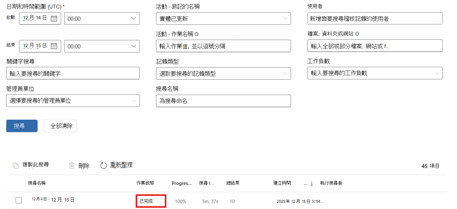 選取 [ 搜尋 ],然後等待作業狀態變更為 [完成]。