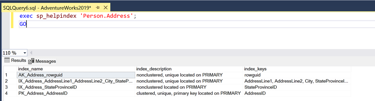 exec sp_helpindex 'Person.Address';