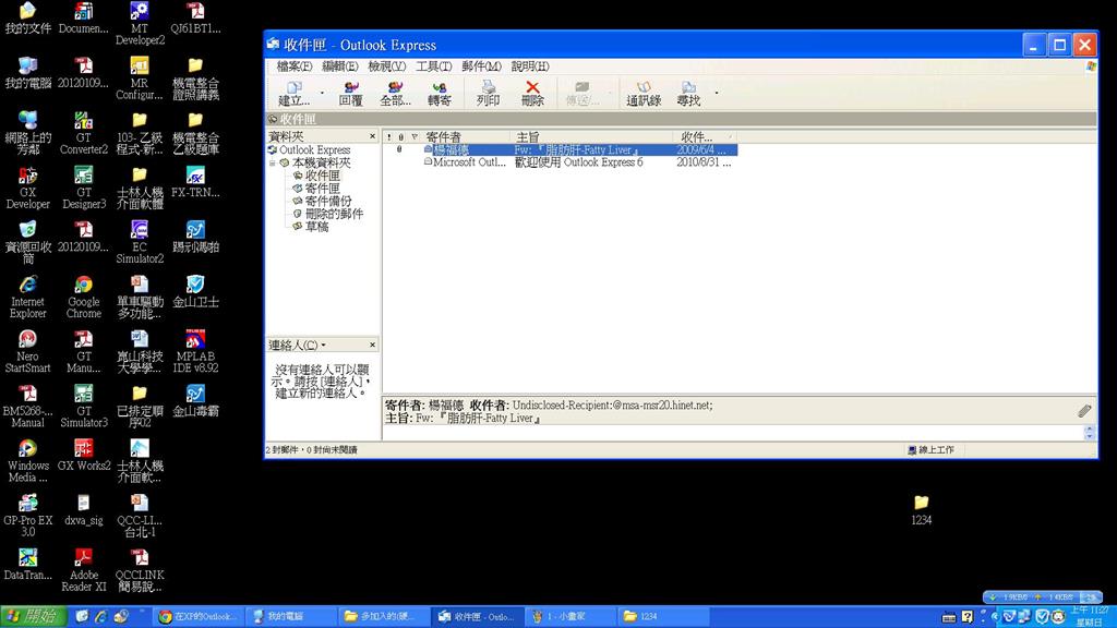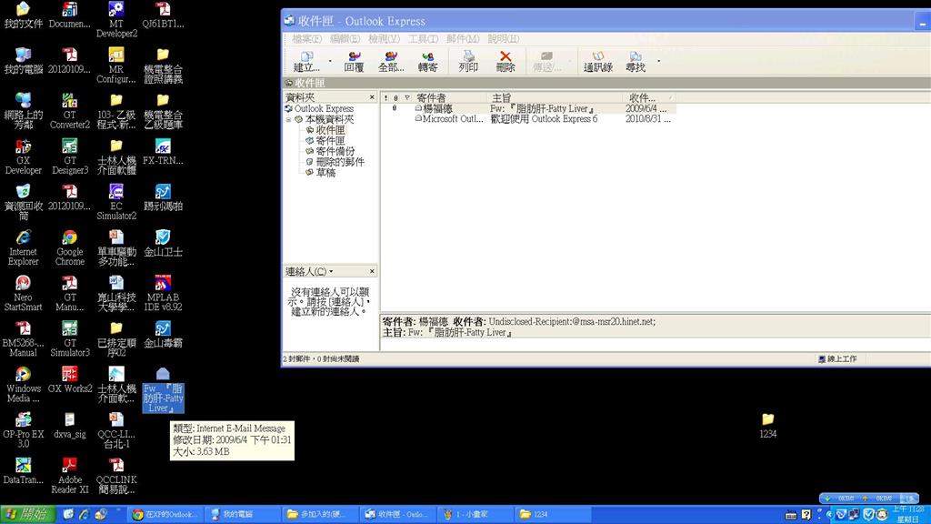 老大,那叫 Outlook Express 6.0 ,跟 Office Outlook 完全沒關係,既不是 Outlook 2003 ,也不是 Outlook XP,是伴隨 Internet Explorer 6 以前附贈的軟體。
