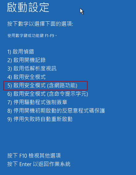 - 請選擇『啟用安全模式**(** 含網路狗能 )』(F5是熱鍵)