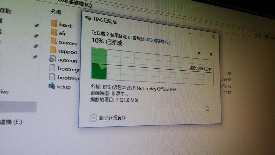 如果你是使用USB 3.0的隨身碟應該快很多。且有些軟體使用會快一點。