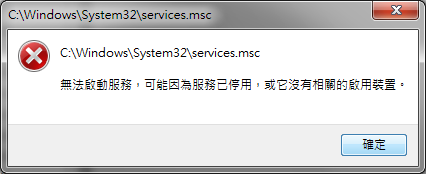 全部需要使用系統管理員開啟的檔案都會*跳出無法啟動服務 可能因為服務已停用 或它沒有相關的啟用裝置*