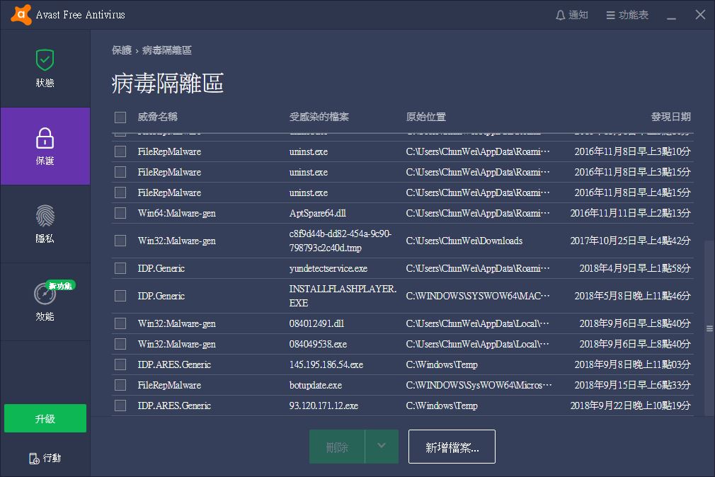最近我的Avast防毒軟體提示我,從Windows\Temp資料夾隔離了一個檔名是IP位址的檔案,說那是IDP.ARES.Generic。