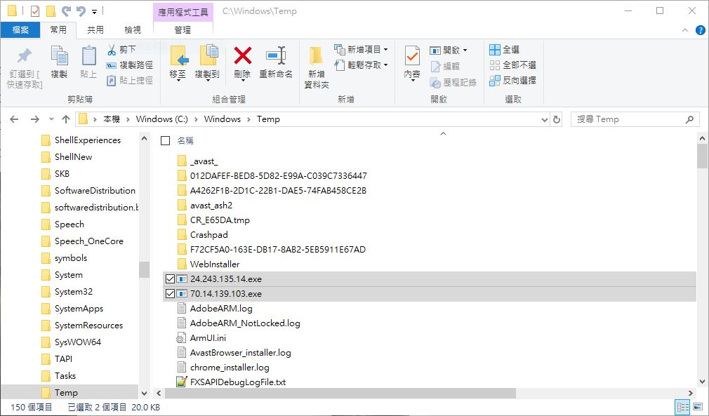 我之後檢視Windows\Temp資料夾,發現裡面有兩個檔名是IP位址的檔案,感覺很像Malware或Virus。