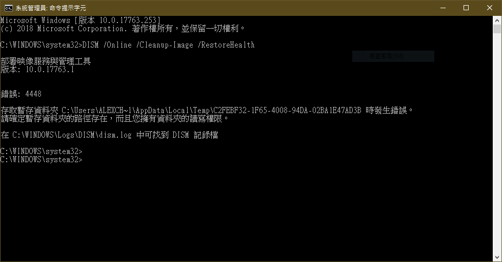 輸入 dism.exe /image:C:\ /cleanup-image /revertpendingactions 試試能不能修復,