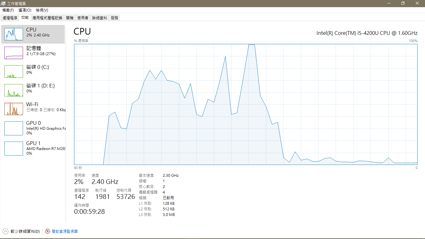 是否 CPU & 記憶體 %太高?與當時正在 Run 那些工作!