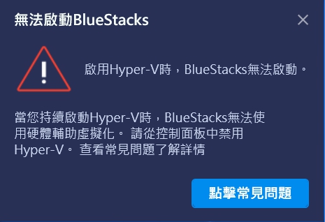 開啟模擬器就會顯示次問題,有的模擬器一開起就藍屏