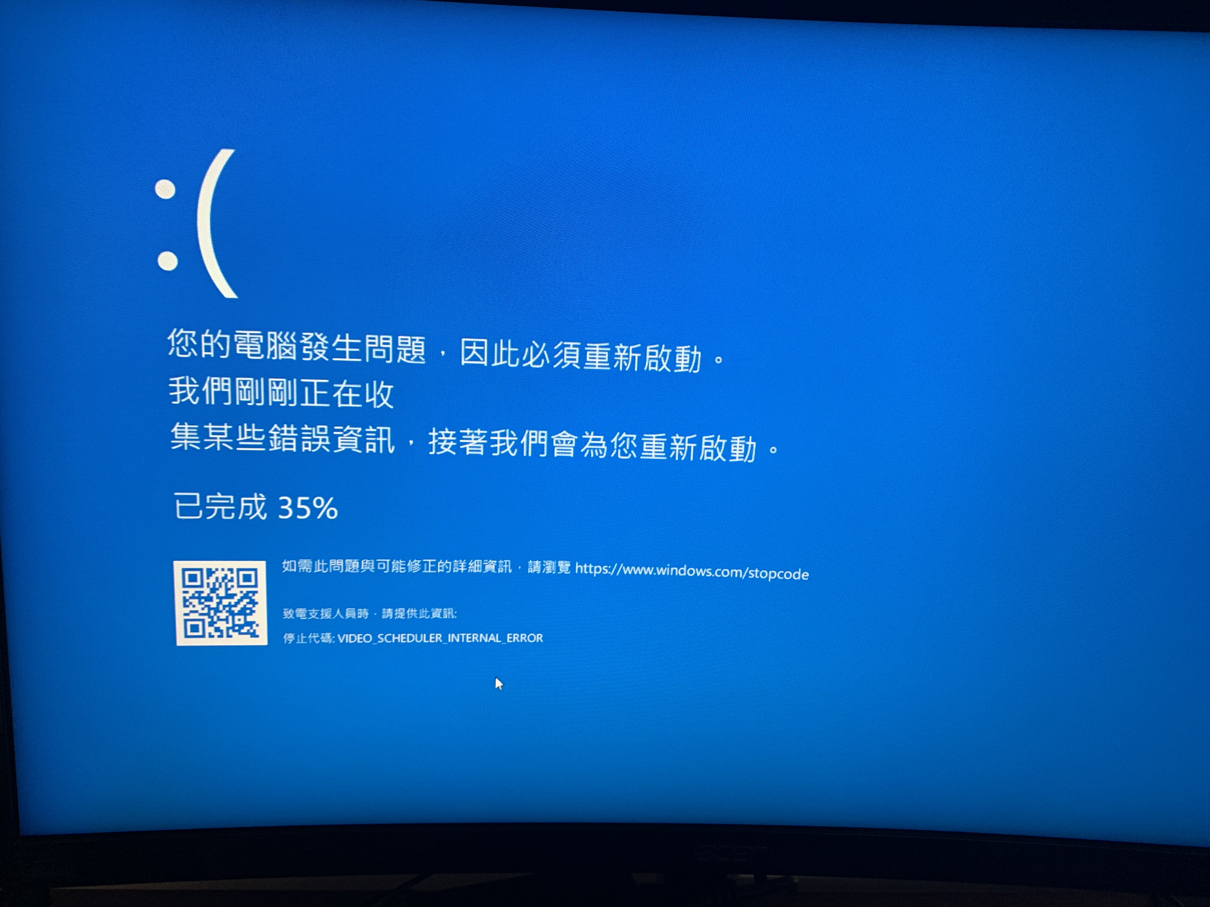 瞭解到您系統出現藍書面的問題。