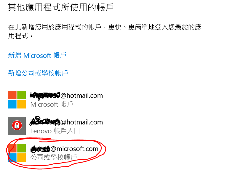 使用完畢後電腦中留有Microsoft公司帳戶資訊等且無法移除,