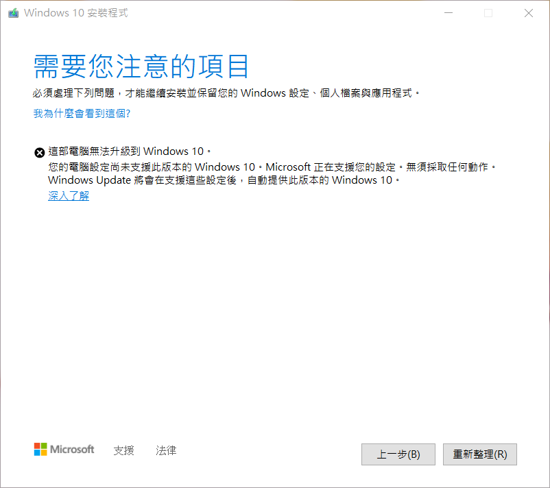 我不能用windows updata來更新,之後我就下載iso更新工具,如下圖說我的電腦設定不支援更新,是我的電腦太舊嗎?