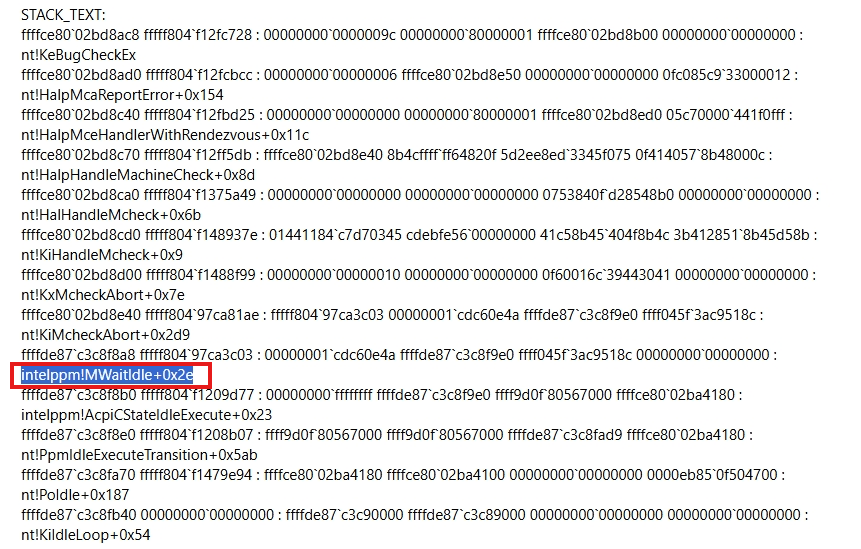 SYMBOL_NAME: intelppm!MWaitIdle+2e