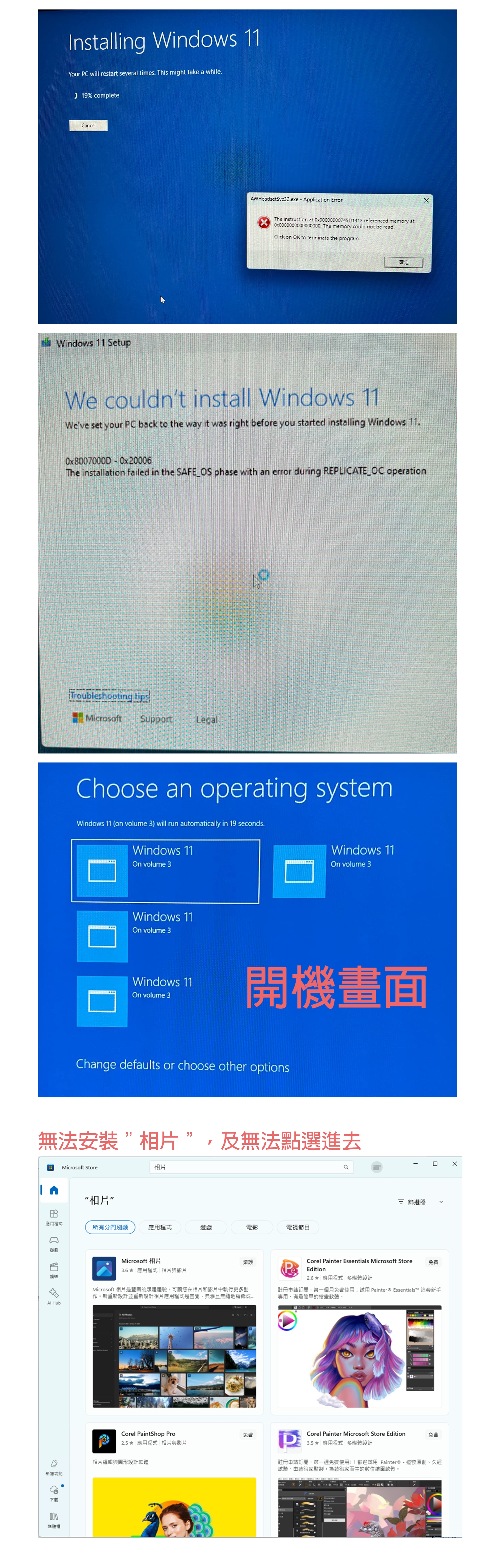 win11相片檢視器無法開啟,解除安裝後,無法重灌Microsoft 相片,顯示代碼: 0x803FB005,Microsoft Store的其他軟體也無法安裝,我的Windows Update更新為最新狀態。