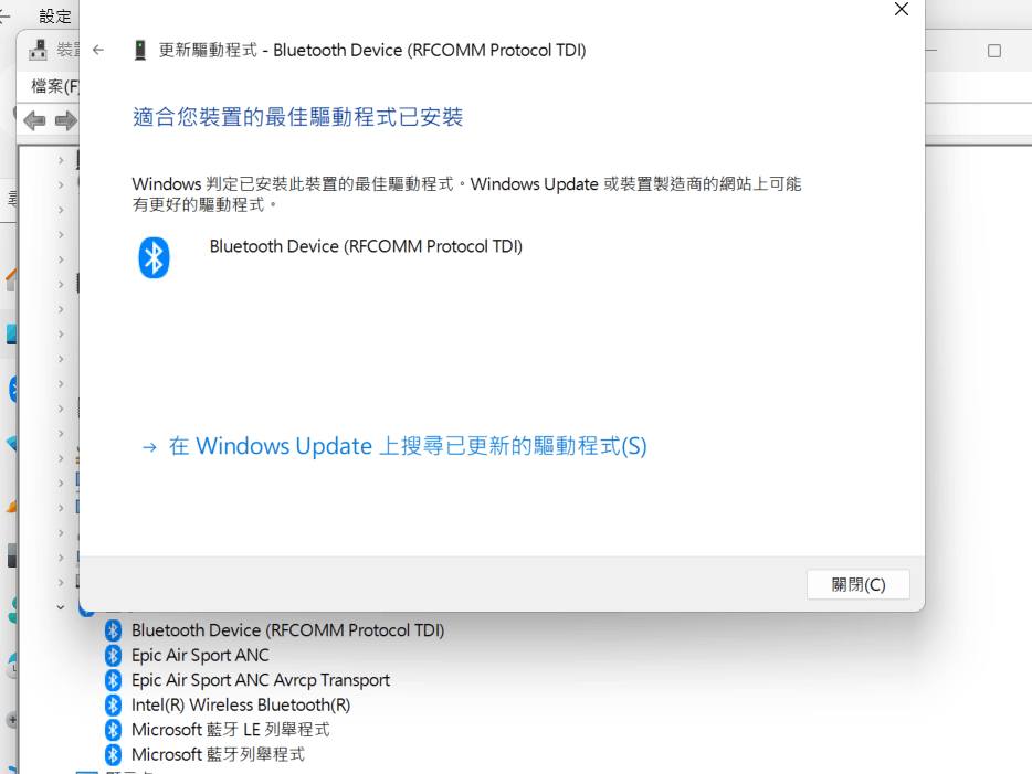 2.裝置管理員內檢查所有藍芽的驅動程式皆顯示已安裝最適合的驅動程式