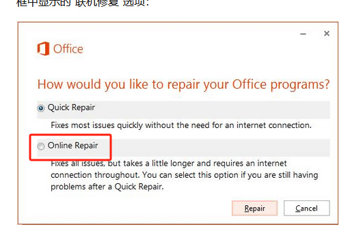 建議打開繫統的設定,應用,安裝的應用,找到安裝的Microsoft 365(Office)點擊修復,選擇“聯機修復”。