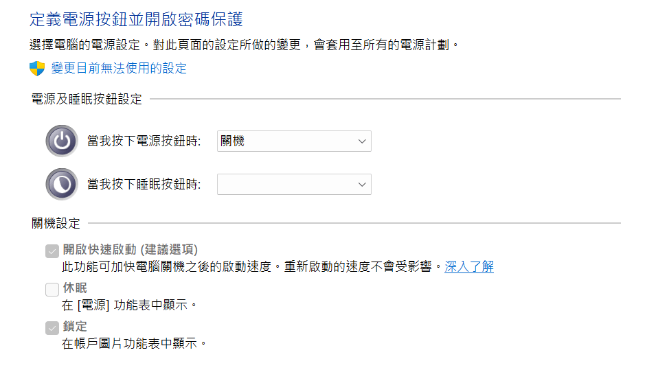- 在 Power Options 區段,選取變更電源按鈕執行什麼操作。
