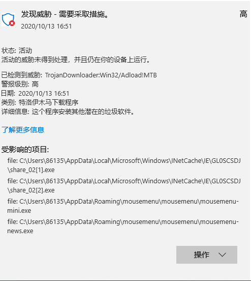 执行完毕后,麻烦您第二次重启设备,然后再确认一下 Windows 安全中心是否还会不停的弹出 “TrojanDownloader:Win32/Adload!MTB” 病毒威胁。