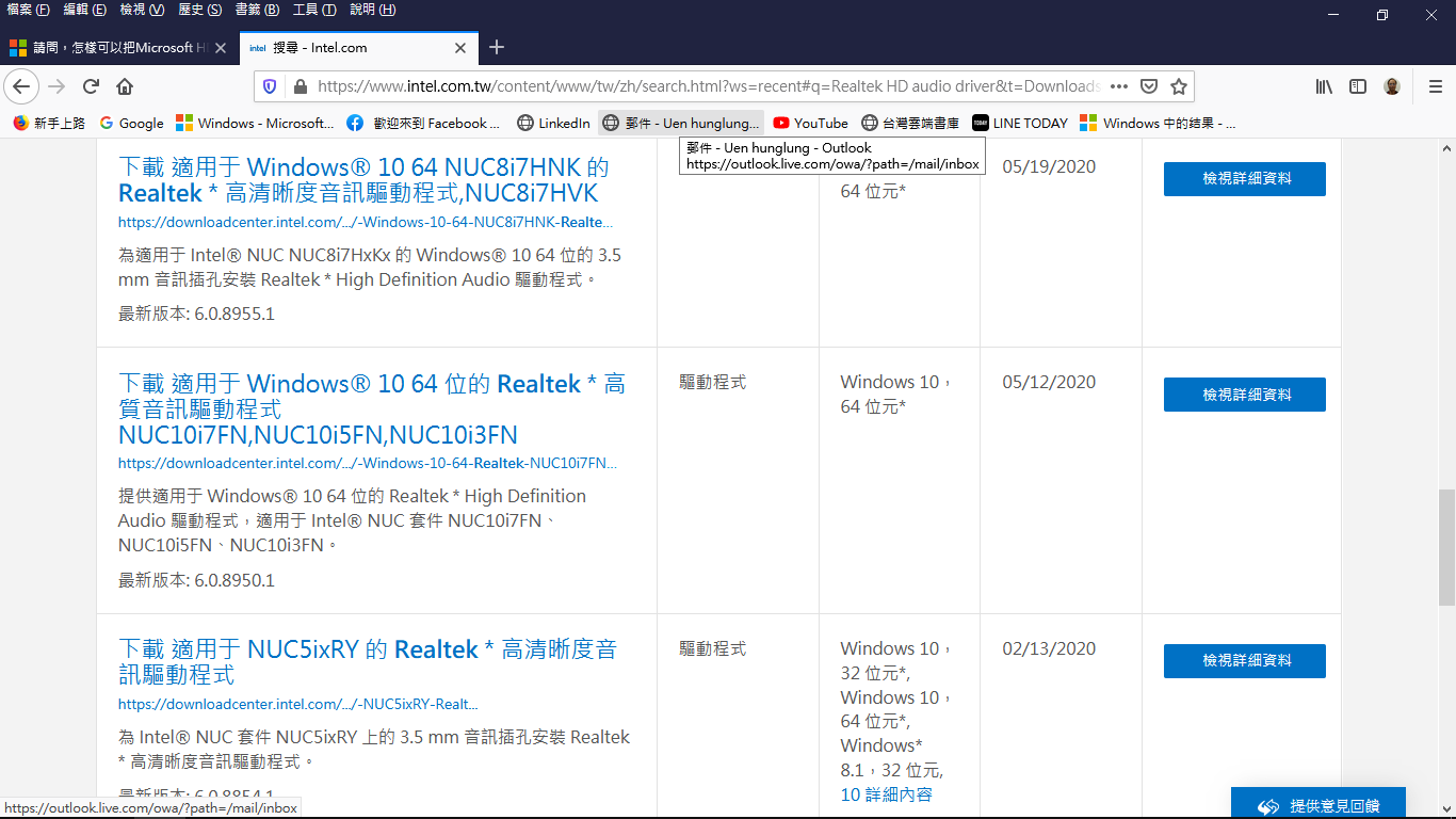 傳統驅動(HDA?)的部分,其實微軟也有更新比較通用的版本,通常是其中檔案在100MB以上的! 搜尋Realtek MEDIA 2020後,點選日期排序,通常就是檔案很大的那個! 但是其實似乎HDXRT.inf有細分版本FF00(比較多ASUS?)、FF01(比較多GIGAbyte)、FF03(比較多MSI)之類的,可能要多是裝幾個看看。(如果重開機後仍不行,如上移除)