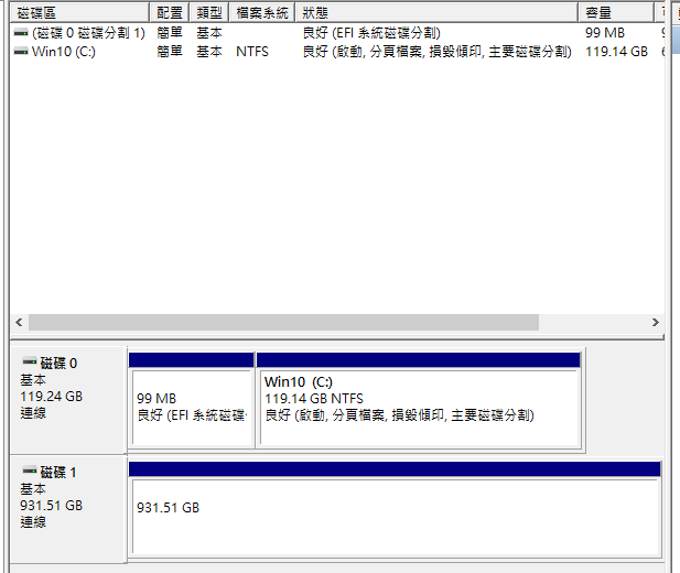磁碟管理顯示畫面如下