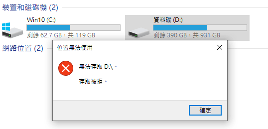 但透過網路磁碟方式可以開啟該磁碟,也可以正常使用