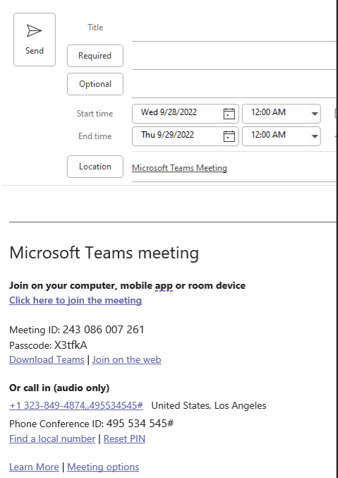 在您創建Teams會議時,在郵件下方會有一個類似簽名的內容,裡面有conference ID,可以給無Teams的用戶通過電話進入會議; 也可以通過自動生成的連結進入會議。如果選擇「所有人」,則有權訪問會議連結的任何人(包括呼入的人員)將直接進入會議。