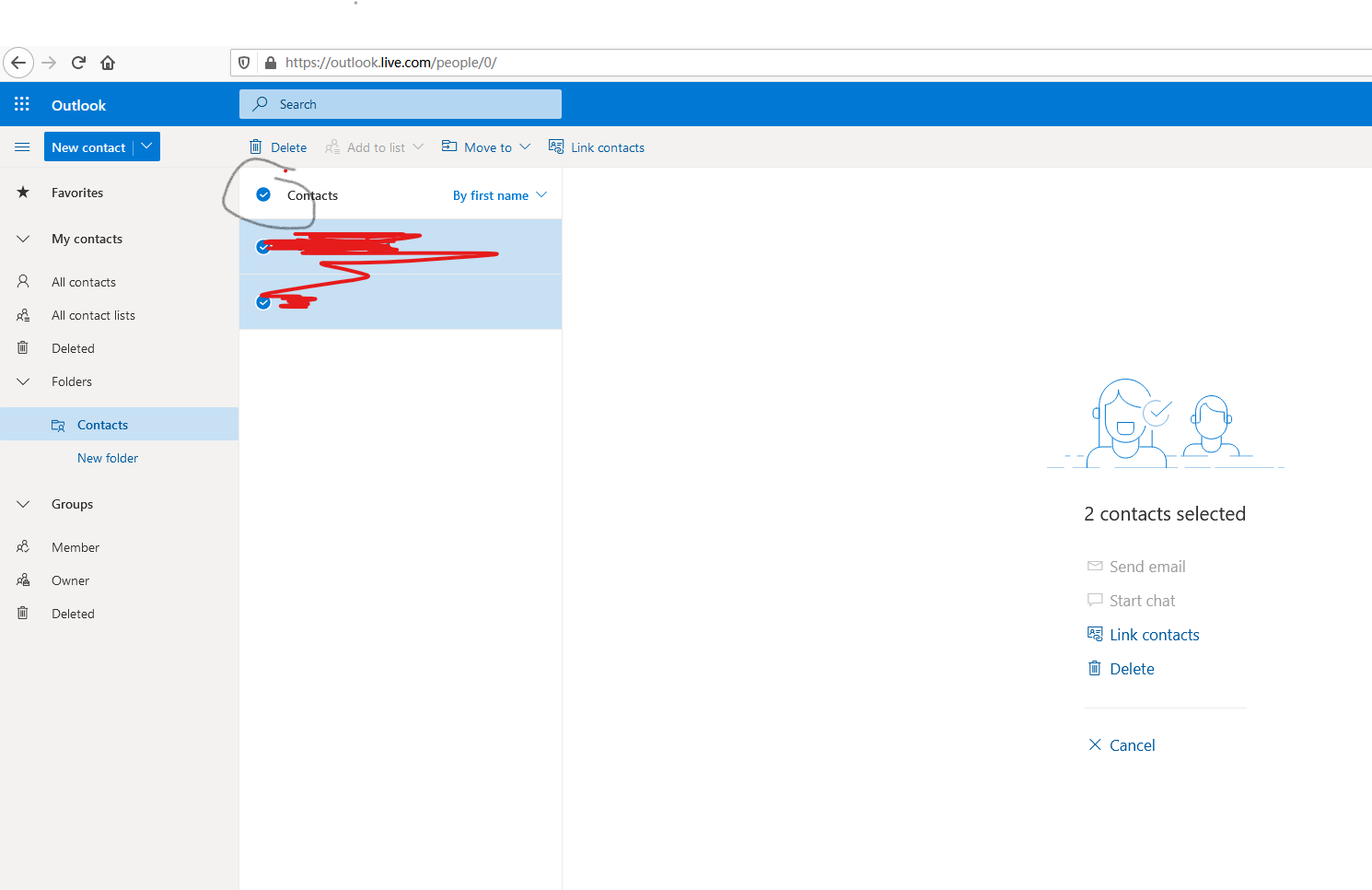 請問如果要查看自己的outlook有多少聯絡人,要在哪一個頁面查看。