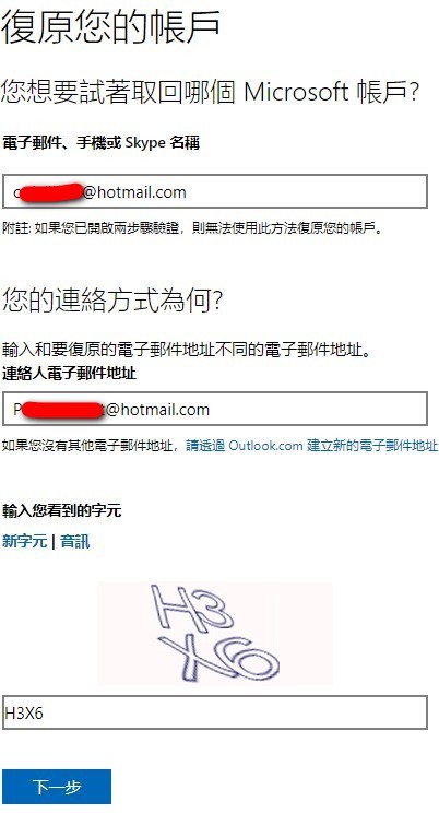 5) 在您的親人被鎖定在帳戶之外之前,是否添加了備用電子郵件地址和電話號碼以進行恢復?