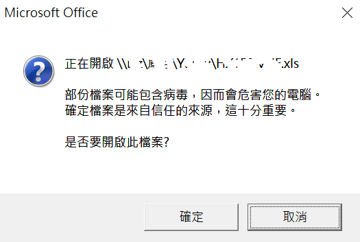 在公司使用共用文件時,想要開啟excel裡建立的超連結,會跑出「部份檔案可能包含病毒 因而會危害你的電腦。 確定檔案室來自信任的來源 這十分重要。 是否要開啟此檔案」的視窗,點選確定之後,電腦也沒有回應,點選的檔案也沒有叫出來。我的excel是2016,而且也重開機好幾次了。
