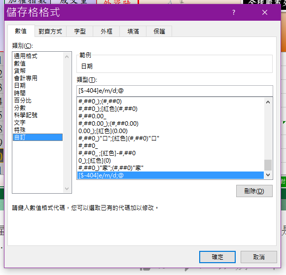 自訂儲存格格式找一下