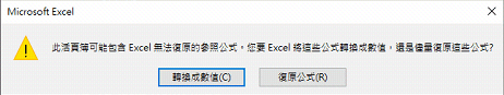 第二次我再重覆[開啟舊檔]對話方塊選擇[開啟並修復],去到圖3的位置後,我選擇抽選資料,然後出現圖4的Message box,不論我選了[轉換成數值]底[復原工式],也都出現圖5的Message box,檔案損毀,無法開啟。
