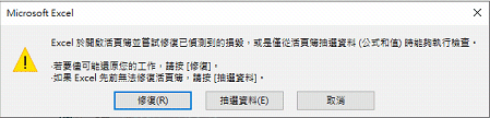 https://support.office.com/zh-tw/article/修復損毀的活頁簿-153a45f4-6cab-44b1-93ca-801ddcd4ea53