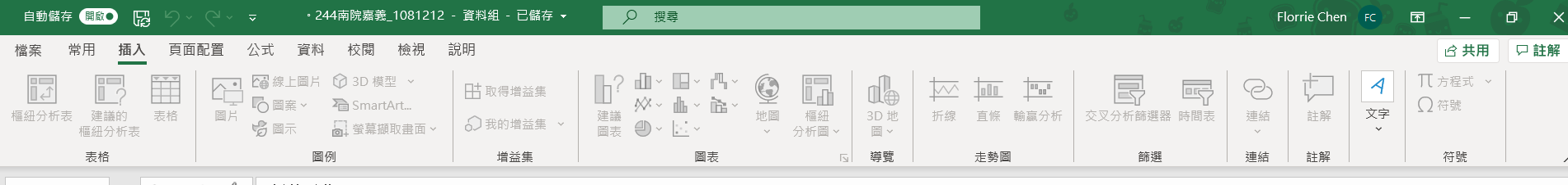 請問在Excel 365中,僅“插入”工具欄出現反白,其他的工具欄是否正常?