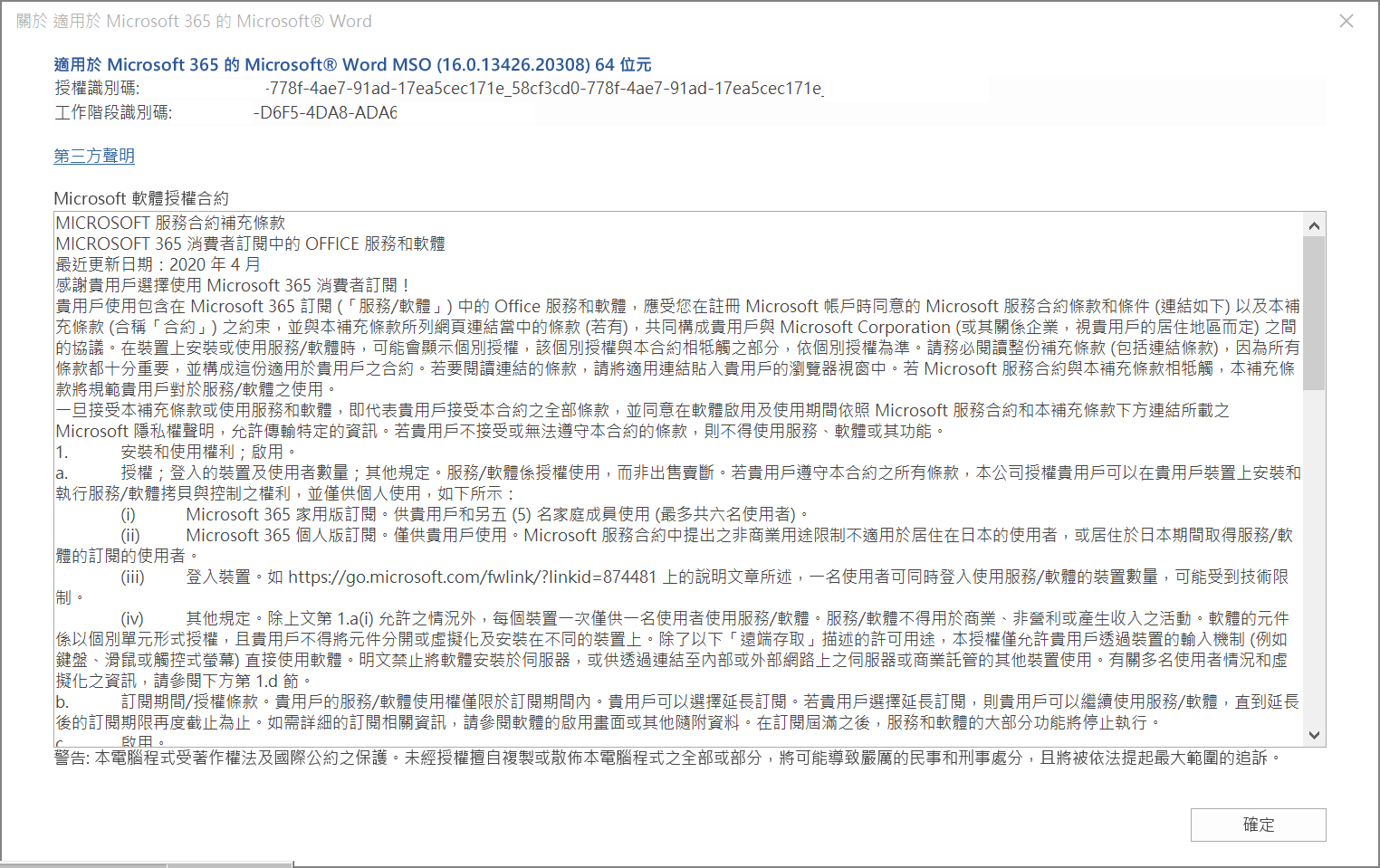 Microsoft 365 和 Office | 詞 | 家用版 | Windows
