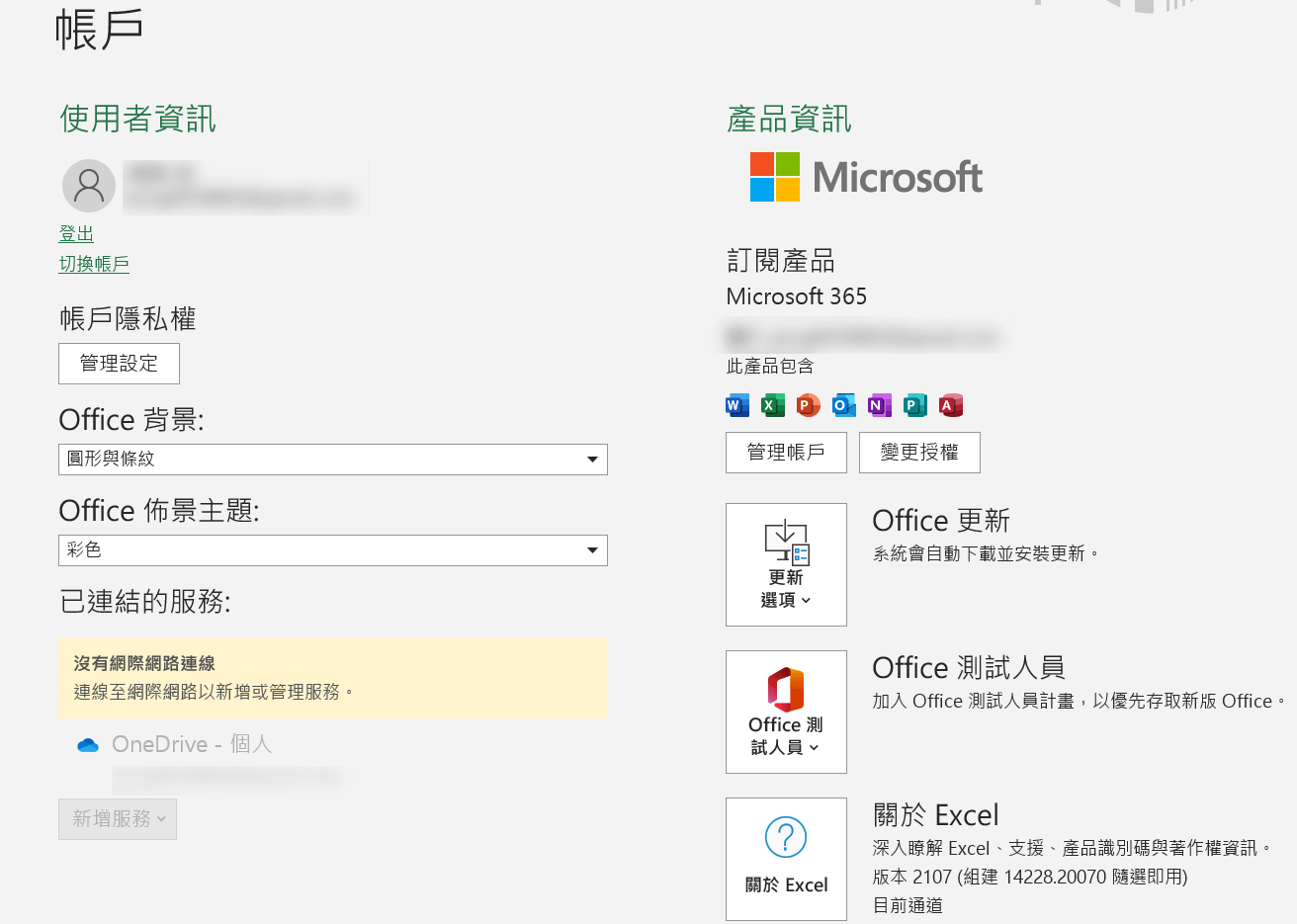 2.檔案是否網絡中下載的?-->office 365 是網路下載, EXCEL檔案是本機 新增活頁簿