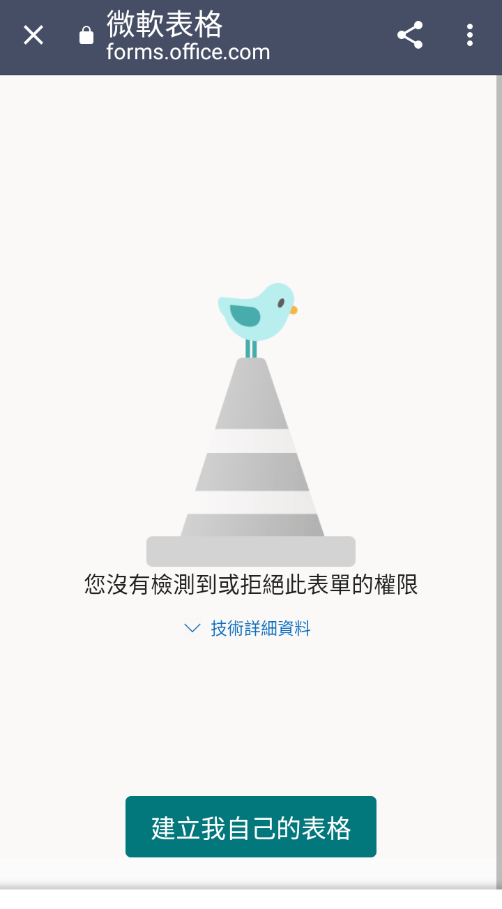 已經使用組織成員的帳號,但是在登入時卻會跑出無法檢測與拒絕此表單的權限,想請問要如何處理?