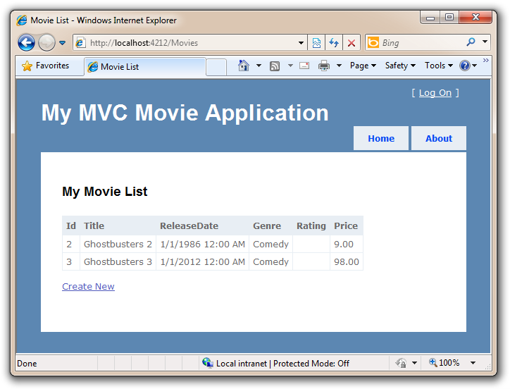 ![Internet Explorer 瀏覽器視窗的螢幕擷取畫面,其中顯示已移除 [編輯]、[詳細資訊] 和 [刪除] 連結的 [我的電影清單]。](getting-started-with-mvc-part5/_static/image9.png)
